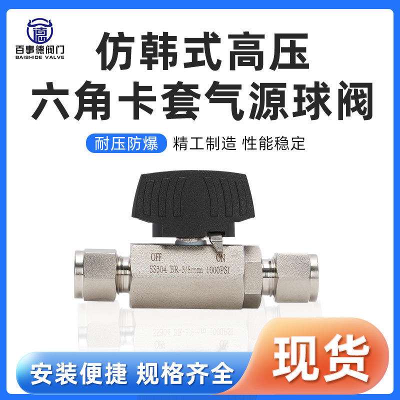 304/316 Stainless Steel High-Pressure Hexagonal Compression Fitting Air Source Korean-Style Ball Valve Instrument Switch