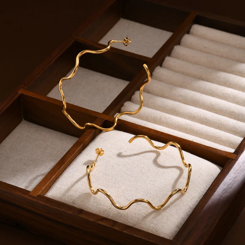 304 Stainless Steel IG Style Jewelry Set for Women Wave Design Accessories with Elegant Streetwear Look Gold Plated Finish