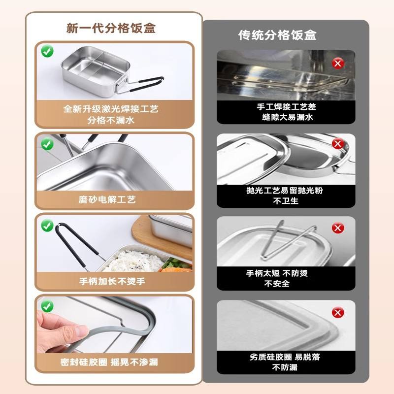 304 Stainless Steel Lunch Box Rectangle With Lid For Office Workers And Students