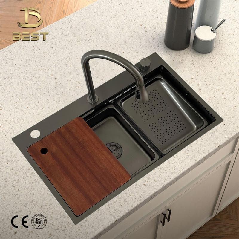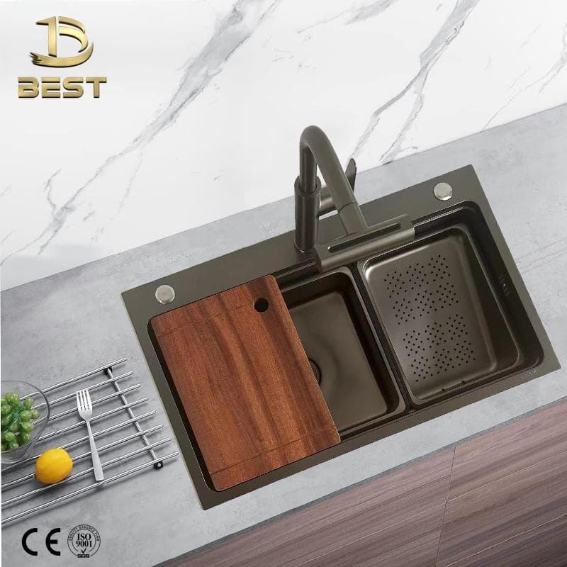 304 Stainless Steel Smart Concealed Rain Honeycomb Black High Design High Quality Kitchen Sink