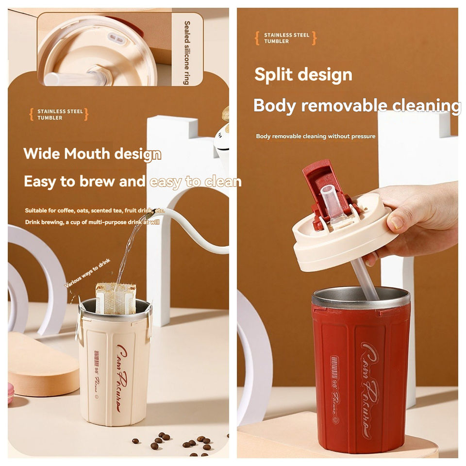 304 Stainless Steel Thermos Coffee Cup Portable Double Drink Student Sippy Cup Milk Cup 520ml Eco-Friendly Modern Design