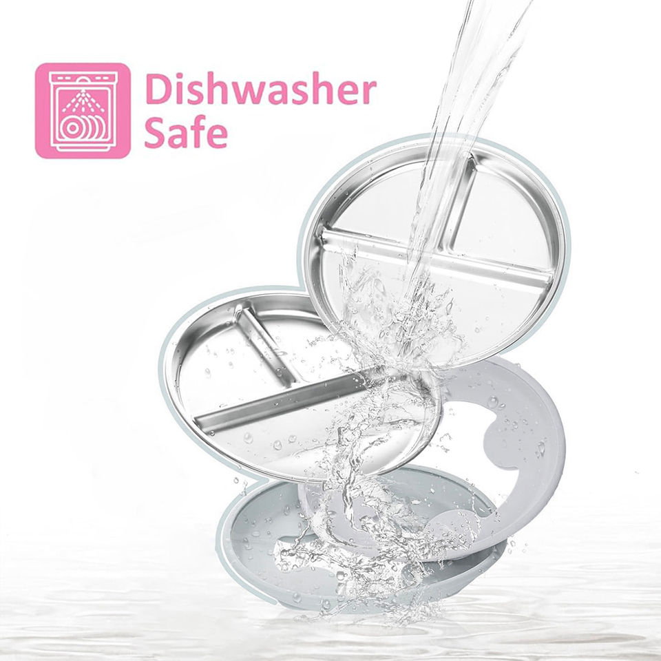 304 Stainless Steel Toddler Plate with Suction Base, Food Grade Removable Silicone Sleeve, Dishwasher Safe Baby Feeding Dish