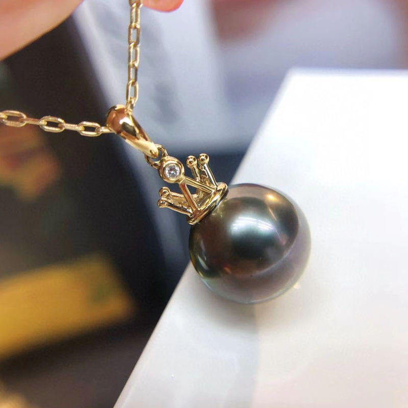 30569 DIY Pearl Accessories S925 Silver Pendant with Crown Jade Necklace 9-12mm Round for Women's Coats