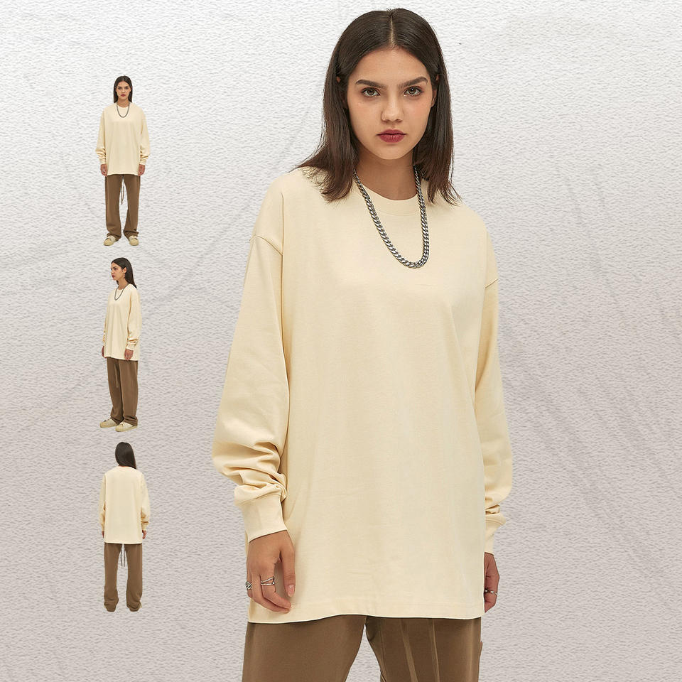 305g Heavy Weight Organic Cotton Top Autumn Winter Loose Long Sleeve T-Shirt Plain Dyed Terry Tshirt for Men