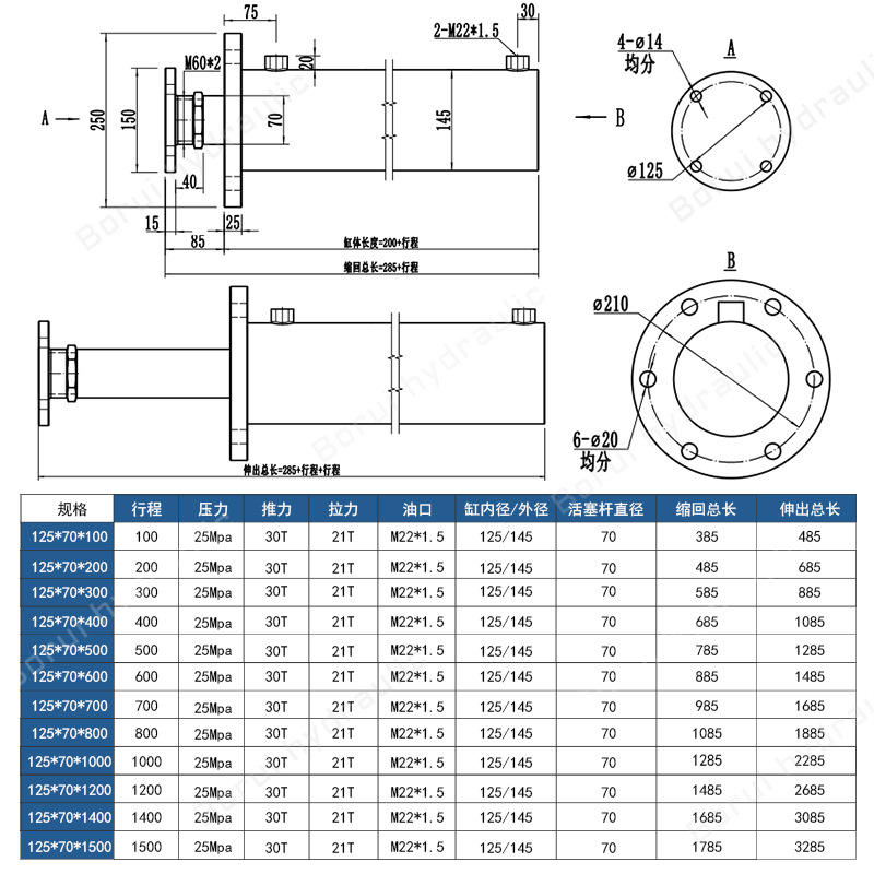 30T Flange-Mounted Hydraulic Cylinder 30-Ton Thrust Leak-Proof Hard Chrome Plated Piston Rod for Heavy Loads Factory Stock