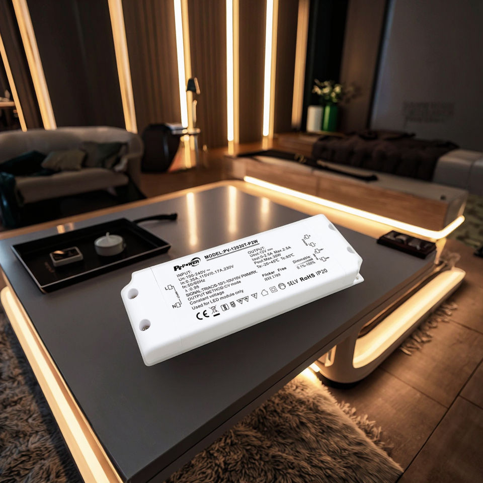 30W Indoor LED Driver Triac 0-10V Dimmable 12V/24V/48V CV Power Supply Transformer AC-DC 5-Year Warranty Single LED Strips