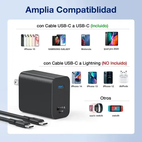 30W PD USB-C Charger 1M Type-C Cable 1-Hour Super Fast Charging Overload Protection 110V/220V Input for