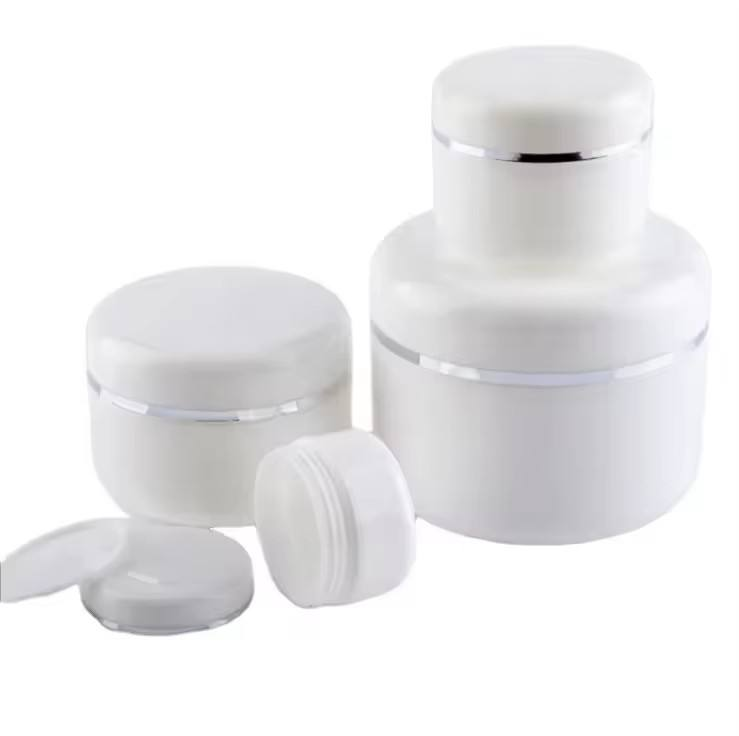 30g 50g 100g 120g 150g 200g 250g 200ml Cosmetic Body Lotion Container Cream Jar with Silver Edge Screw Top PP Plastic White Jar