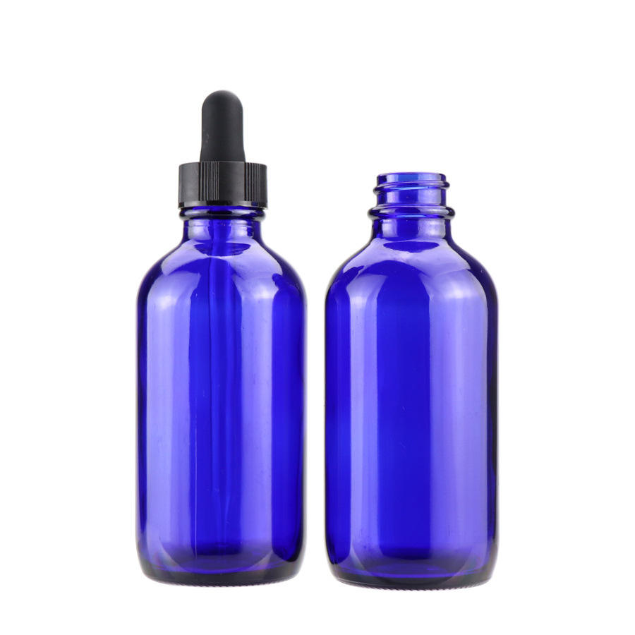 30ml Empty Blue Glass Essential Oil Bottle With Gold Dropper Cap