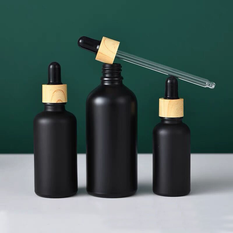 Item:30ml matte frosted black dropper bottle essential oil glass bottle