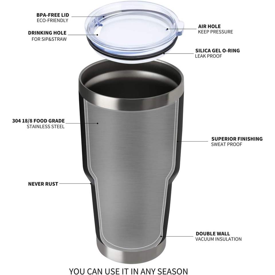30oz Stainless Steel Tumbler Double Wall Vacuum Insulated Travel Mug Durable Powder Coated Insulated Lid