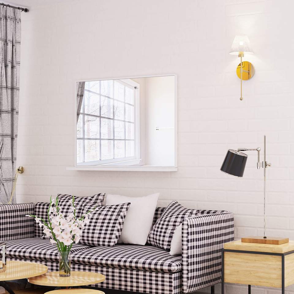 30x18 Inch Framed LED Bathroom Mirror Backlit & Front Lighted Excellent for Daily Makeup & Shaving Use