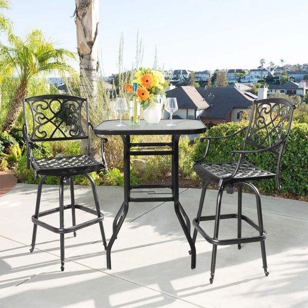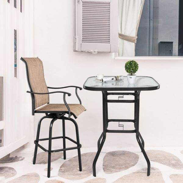31-Inch Square Patio Bar Table with Tempered Glass Top and Umbrella Hole Outdoor Cocktail Height Bistro Table