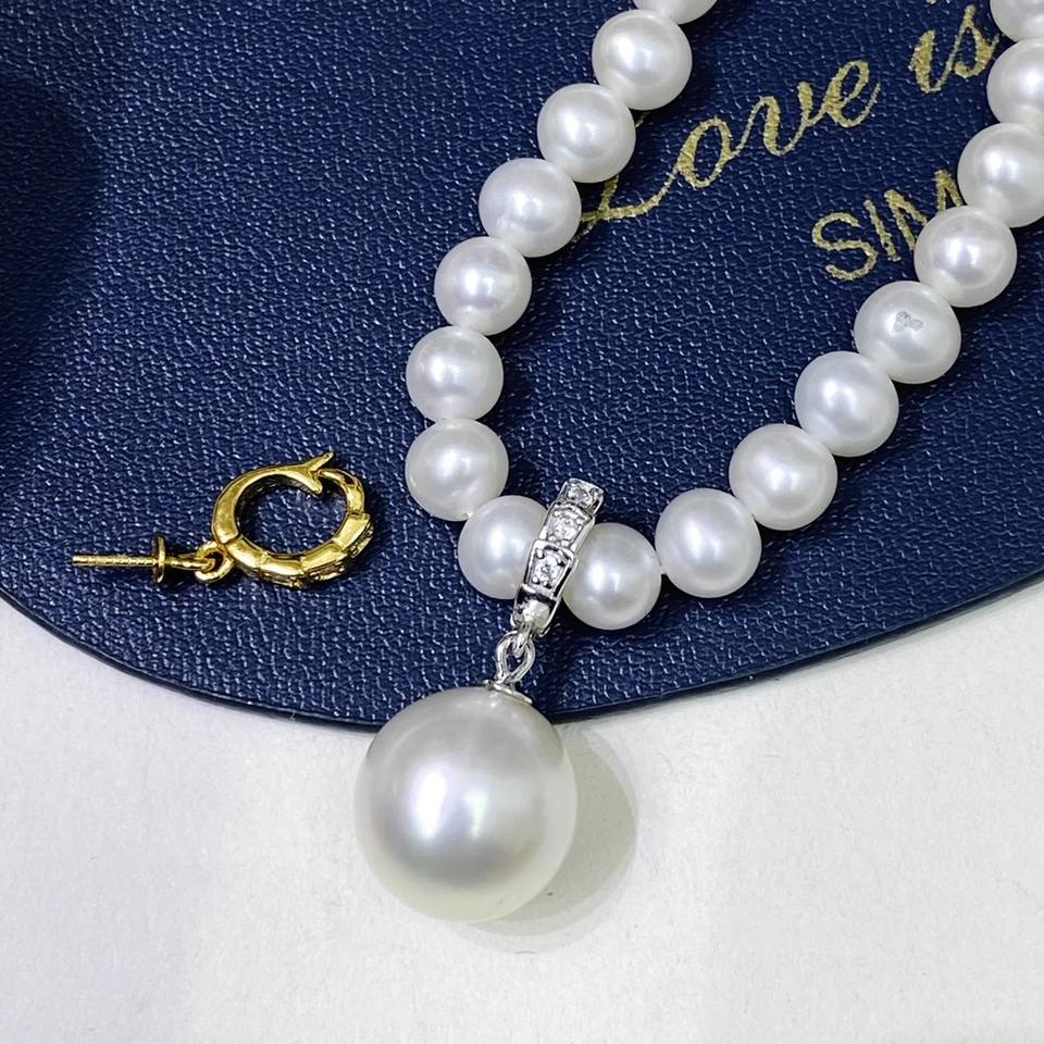 31235DIY S925 Silver Pendant with 10-13mm Round Beads Empty Buckle Necklace Pendant Accessory for Pearl Necklaces
