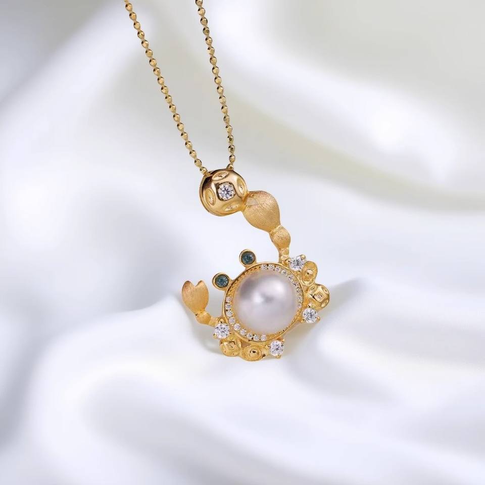 WENCHI Model 10124 DIY Fine Pendants Charms S925 Silver Crab Jade Necklace 8-9mm Beads Empty Buckle Accessorized Pearl Pendant