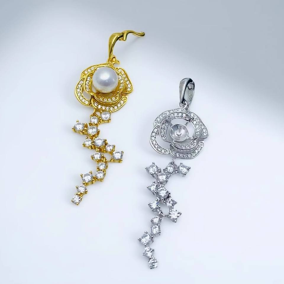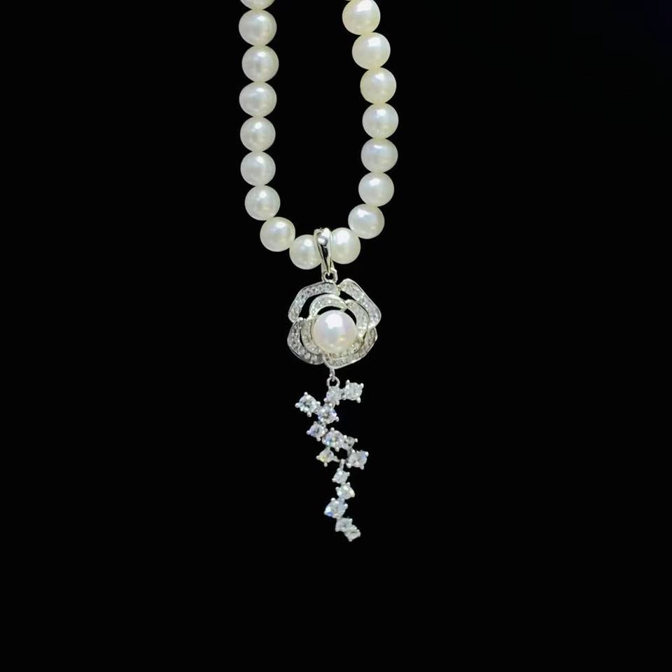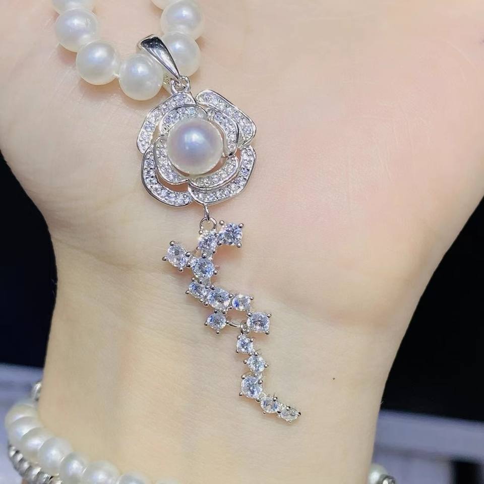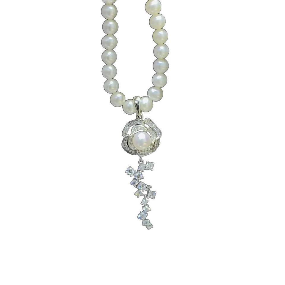 31309DIY Pearl Accessories S925 Silver Pendant Empty Stand with 6-7mm Round Beads Gorgeous Crystal Necklace