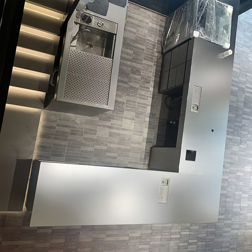 316 Brushed Stainless Steel Mixing Station Built-in with Ice Bin and Drip Tray for Hotel Cocktail Bar