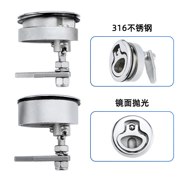 316 Stainless Steel Invisible Round Boat Cabin Lock Embedded Lift Handle and Ring for Yacht Deck Boat Floor Buckle