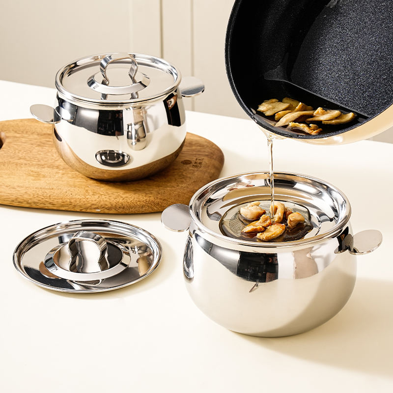 316 stainless steel oil storage tank, kitchen double-handled lard storage container, oil pot with filter.