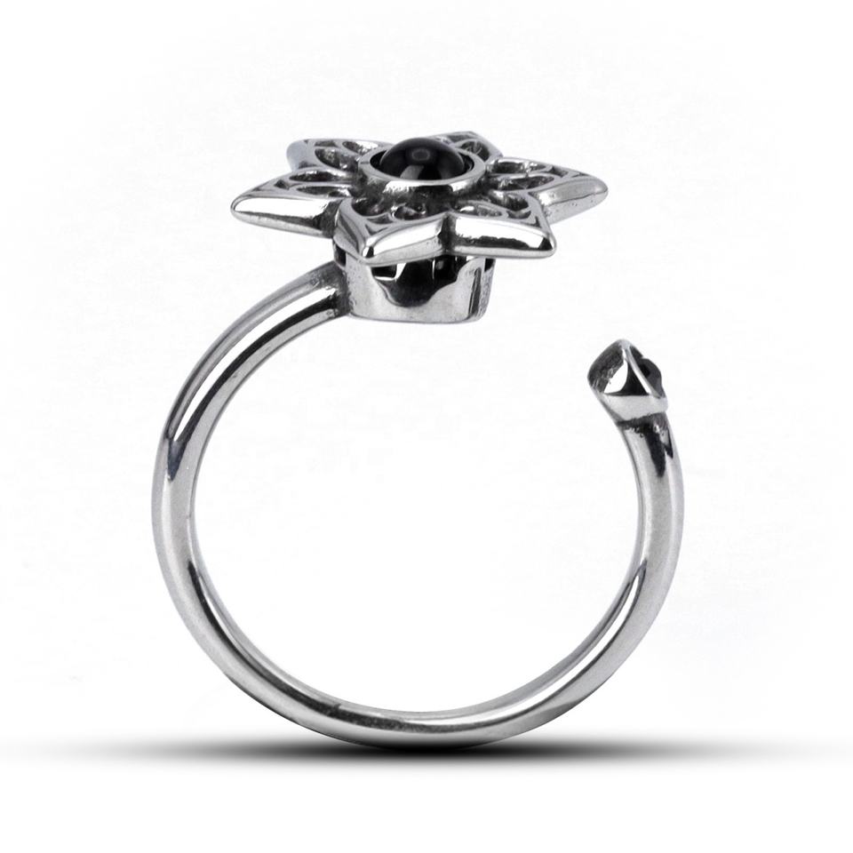 316L Stainless Steel Fidget Rings Hexagram Flower Shape Black Gemstone Inlay Open Adjustable Retro Jewelry for Men Women Daily
