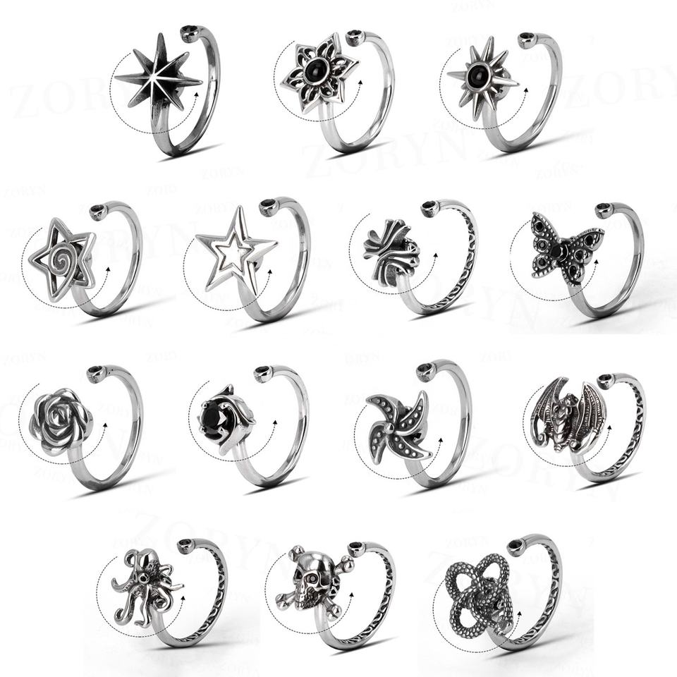 316L Stainless Steel Fidget Rings Rose Shape Open Adjustable Gemstone Accent Fashion Jewelry for Men Women Daily Wear