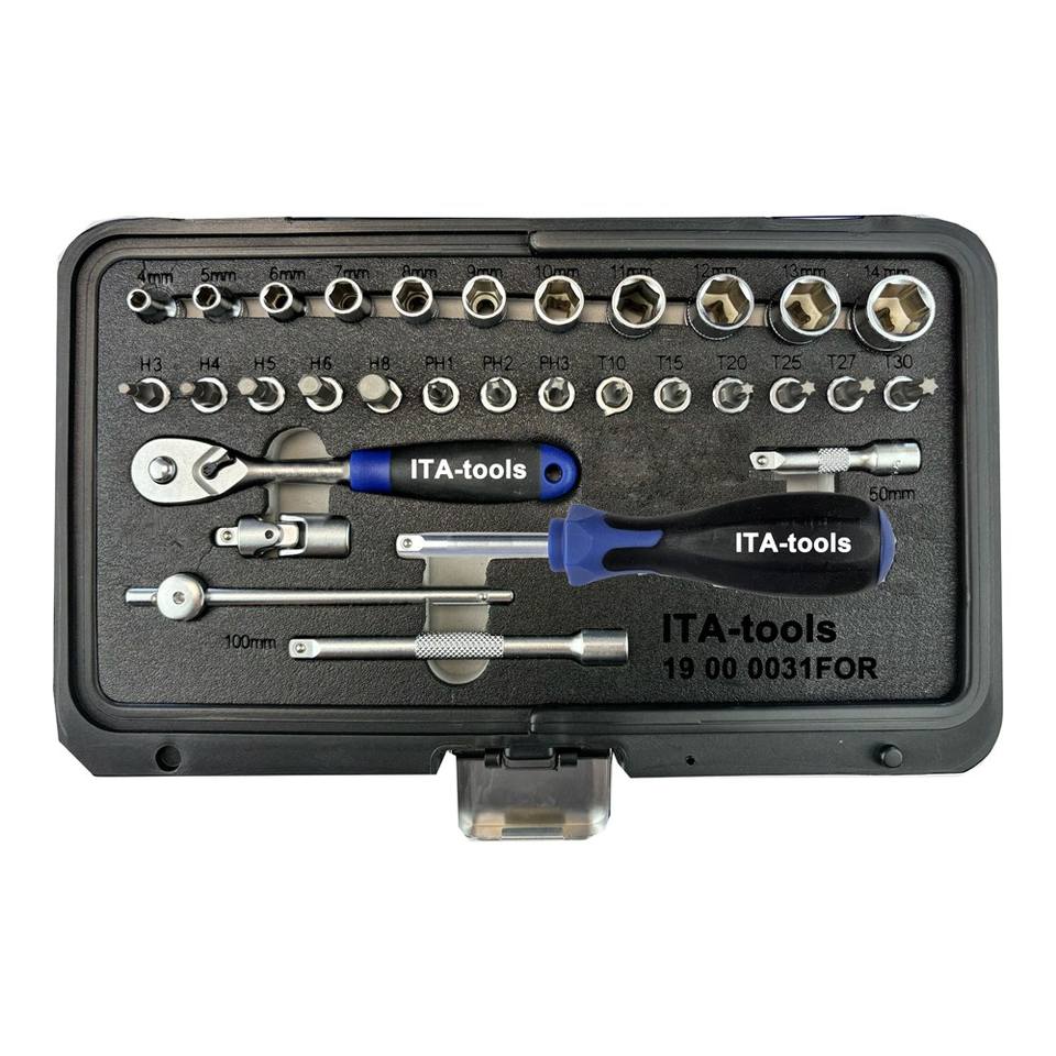 31pcs 1/4\" Dr. 72T Socket Tool Set with Quick Ratchet & EVA Tray Hand-Power Source OEM Customizable for Workshops