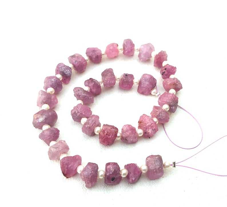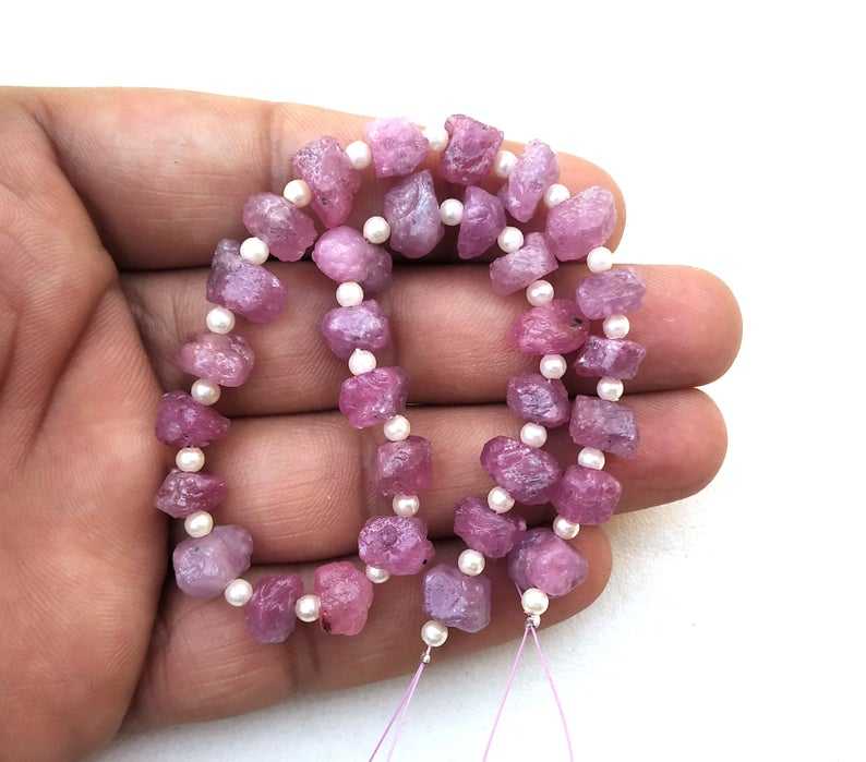31pcs Pink Sapphire Natural Gemstone Beads Center Drilled Rough with Glass Filled Handmade Jewelry Making Wholesale