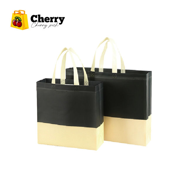 32*28*11cm 44*33*10cm lamination cheap non woven shopping bags beige and black pattern storage fast shipment