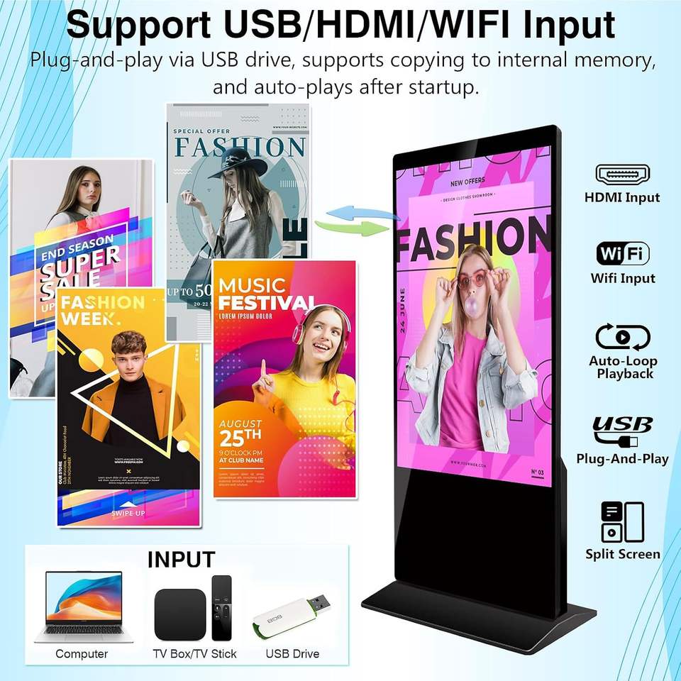 32 43 49 50 55 65 75 Inch Floor Standing LCD Digital Display LCD Advertising Signage Marketing Digital Display and Signage