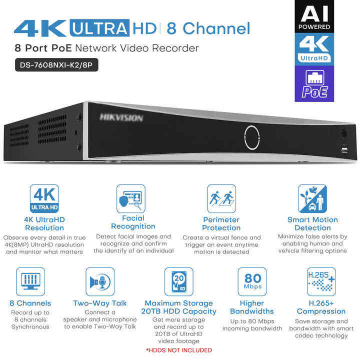 NVR type:8/16-ch PoE 1U K Series AcuSense 4K NVR