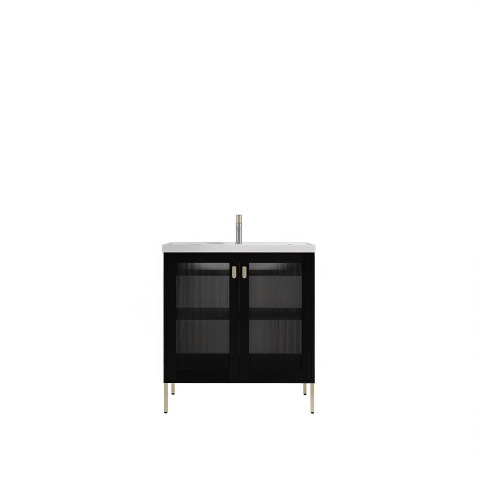 32-Inch Freestanding Bathroom Vanity With Ceramic Sink Soft Closing Doors Modern Contemporary Design Plywood Construction Painte