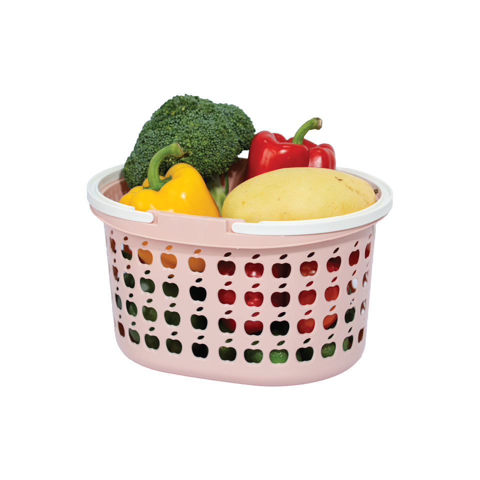 3205 PP Oval Storage Basket with Dual Handles and Apple-Shaped Holes, Durable Multipurpose Plastic Organizer