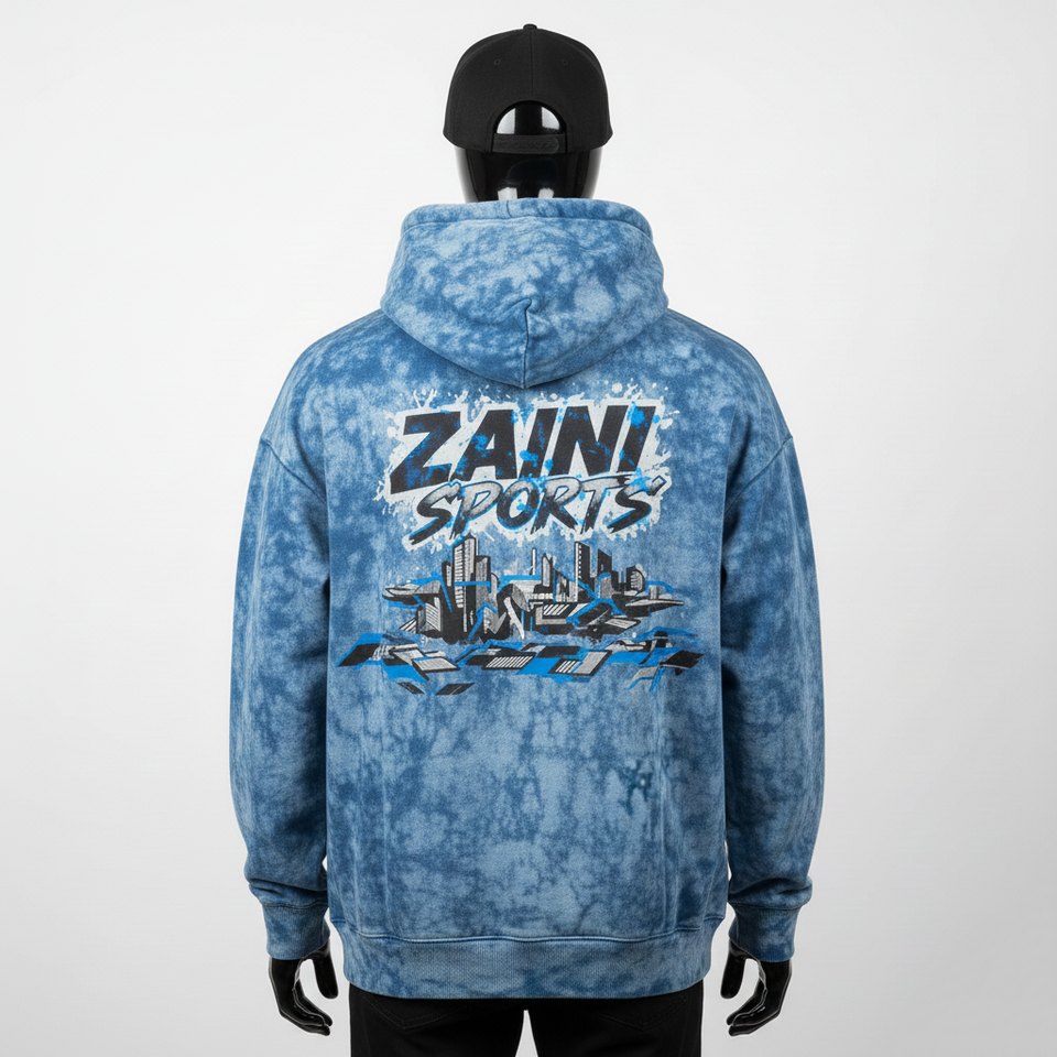 320GSM Premium Acid Wash Hoodie Soft Cotton Fleece Blue Tie Dye Stylish Chest Custom Print Logo Street Fashion basics Hoodie