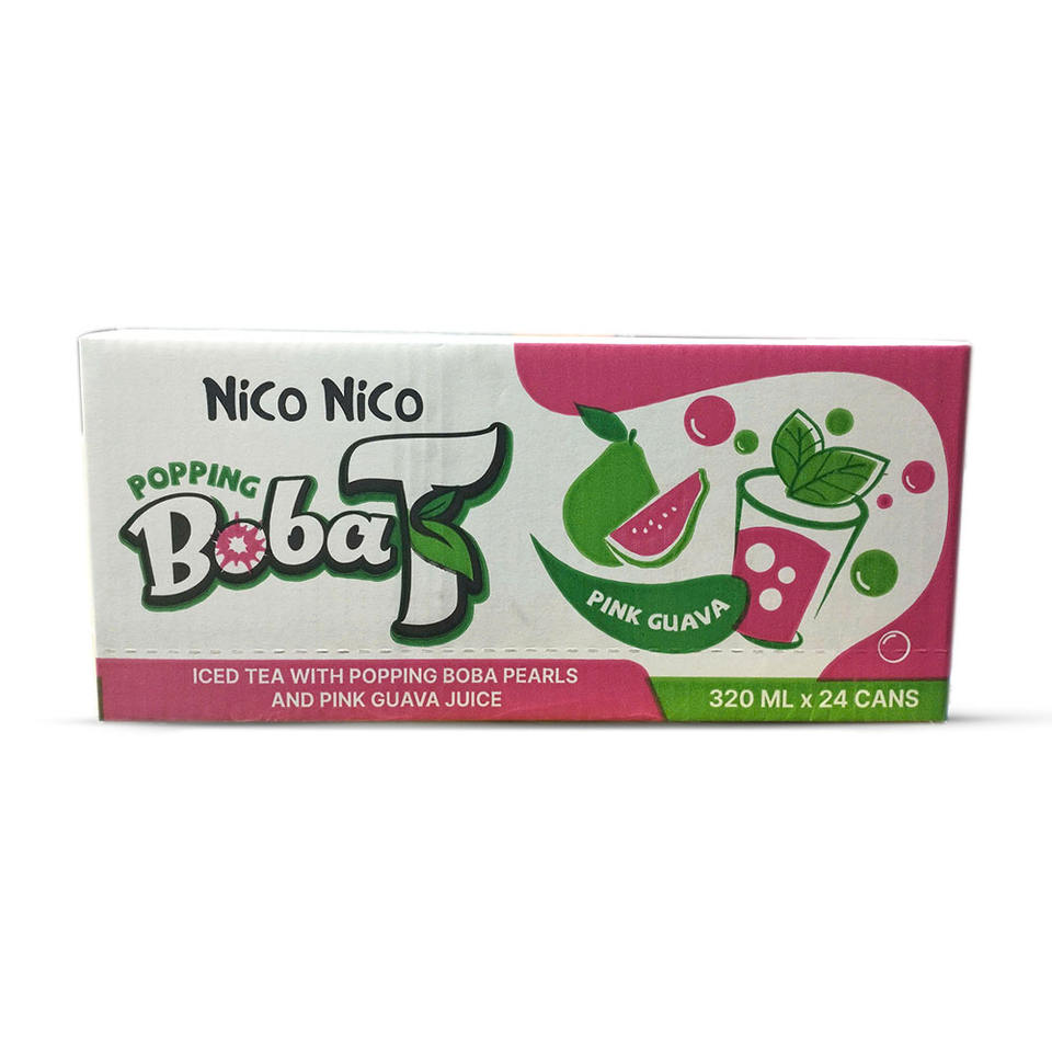 320ml Nico Nico Popping Boba Bubble Tea Pink Guava Flavor Less Sugar Private Label OEM Iced Tea Soft Drinks HALAL Certified