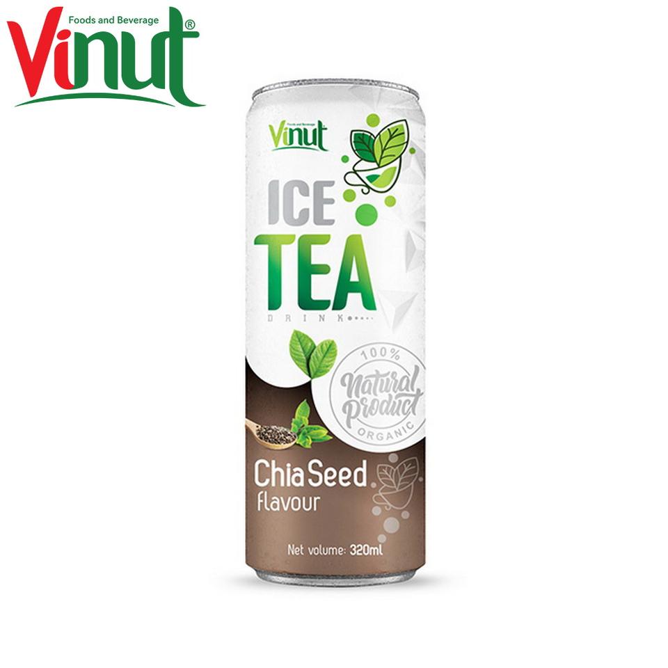 320ml VINUT Real Fruit Juice Can (Tinned) Private Label Service Green Ice Tea with Chia Seed Flavour Wholesalers Vietnam