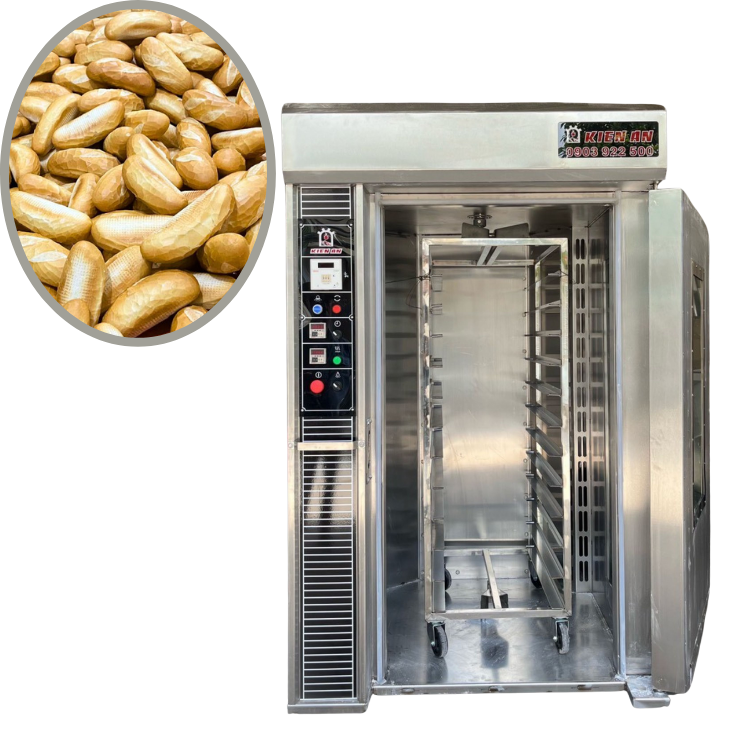 32Tray Rotary Oven Electric Gas Diesel With Trolley Ready To Ship Bakery Bread Oven For Baguette PE Wooden Pallet Vietnam 2025