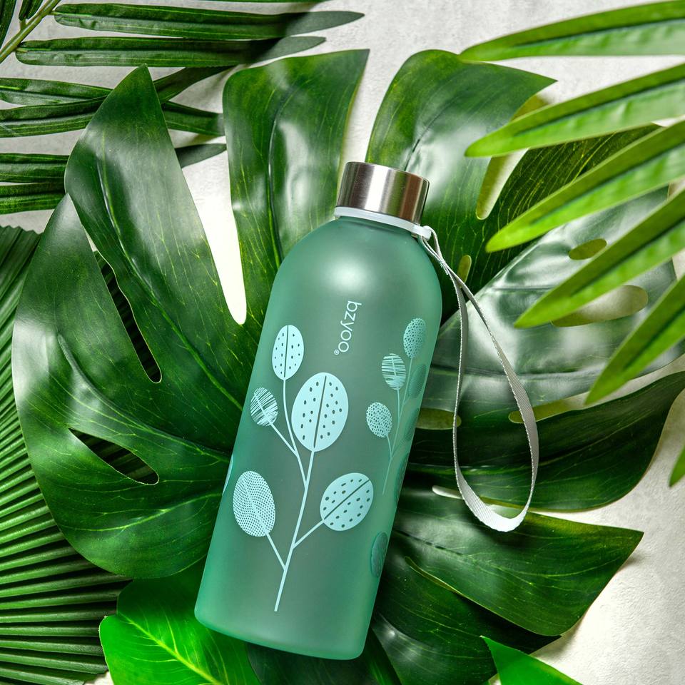 32oz Leaf Green Portable Tritan Plastic Water Bottle BPA Free with Time Marker and Strap for Direct Drinking for Travel