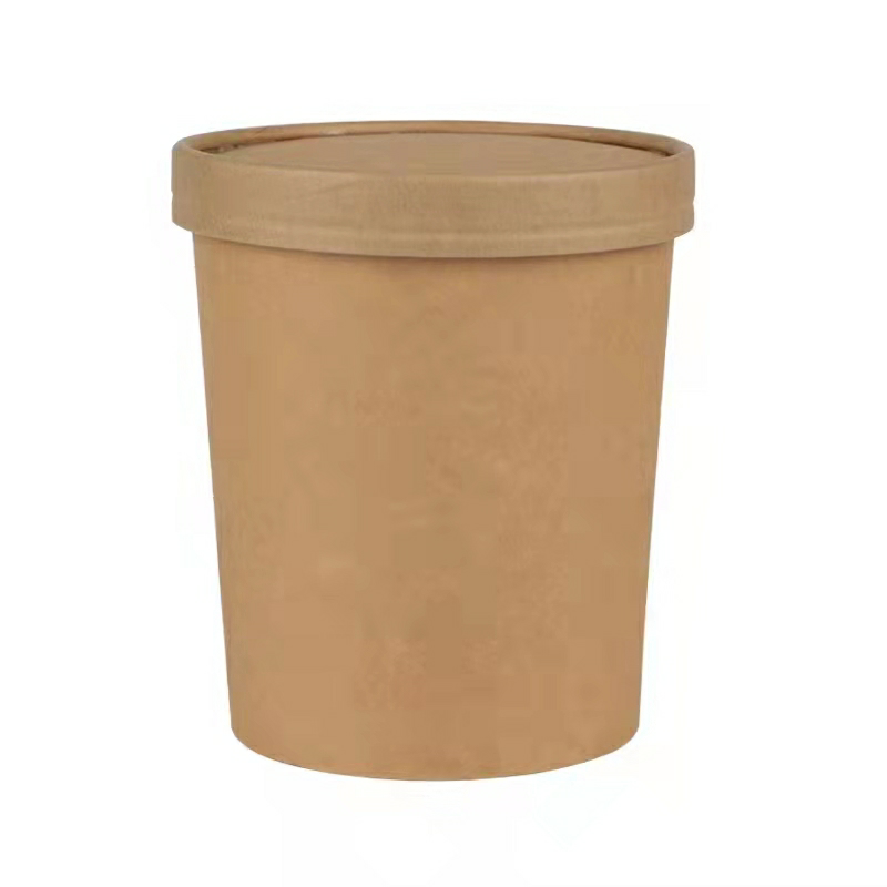 32oz Single Wall Kraft Paper Soup Cup with Lids Disposable High Quality Craft Paper Bucket for Noodles Cookies Custom Packaged