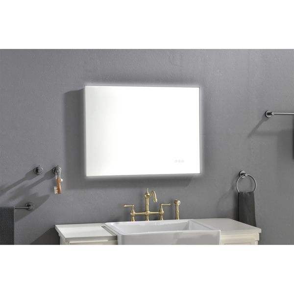 32x24 Inch LED Backlit Bathroom Vanity Mirror Wall Mounted Metal Frame with Smart Touch Button Anti Fog & Memory Function