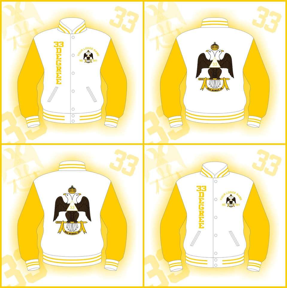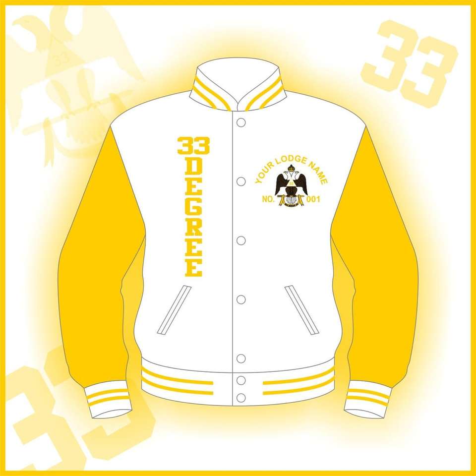 33' DEGREE VARSITY JACKET YELLOW SLEEVES-PURE LEATHER-HSE