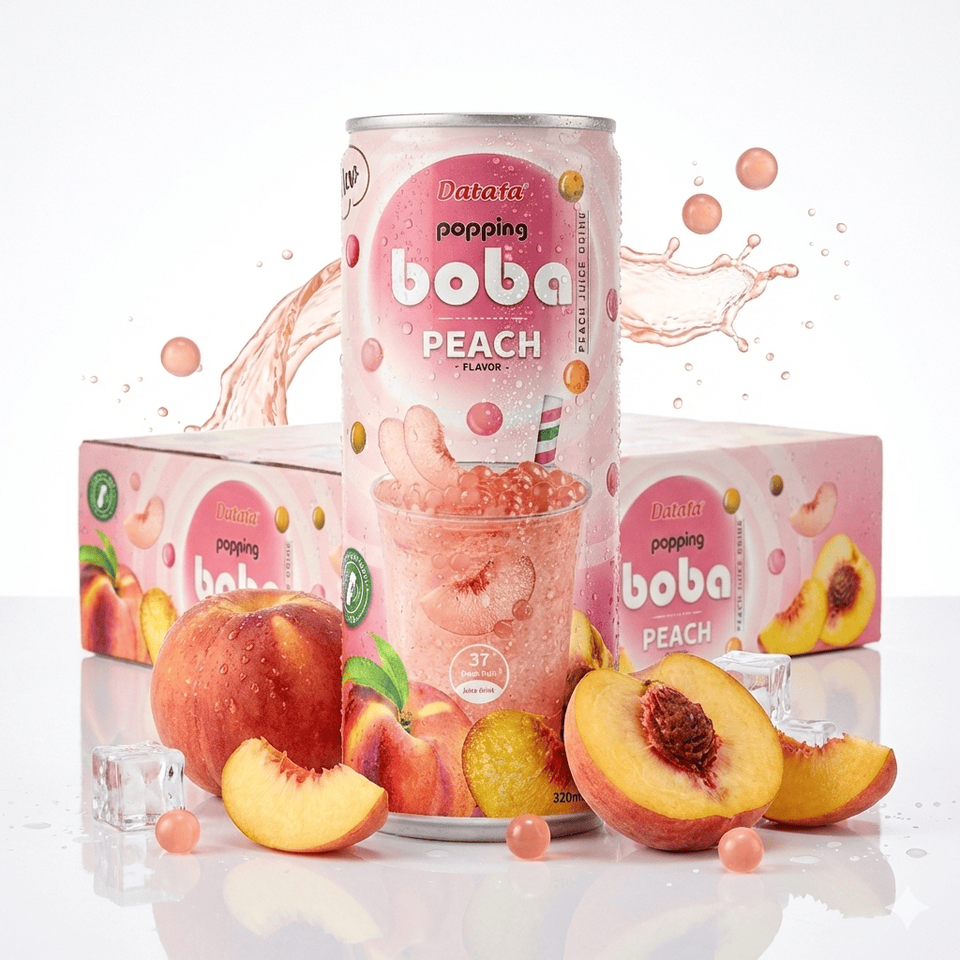 330ml DATAFA Peach Popping Boba with Juice 24 aluminium can per carton Low Sugar - Private Label Free Sample OEM/ODM