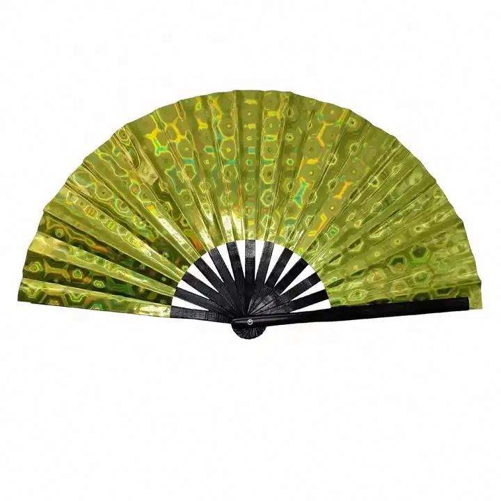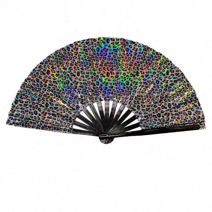 33cm Holographic Rave Hand Fan Clack Handheld Fan for Party Large Folding with Multi Color Festival Fan