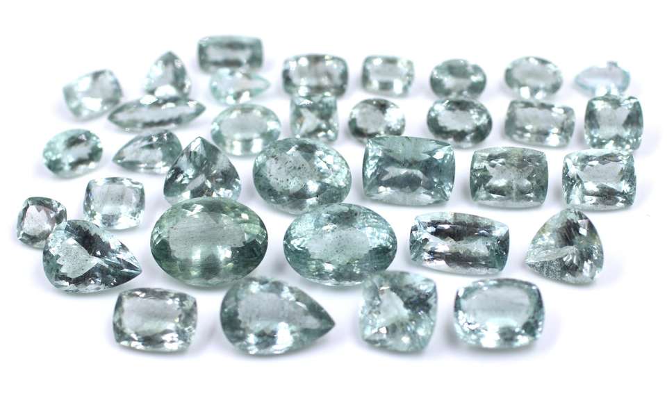 34 Piece Natural Moss Aquamarine Faceted Cut Stone Cabochon Milky Aquamarine Cabochon Mix Shape