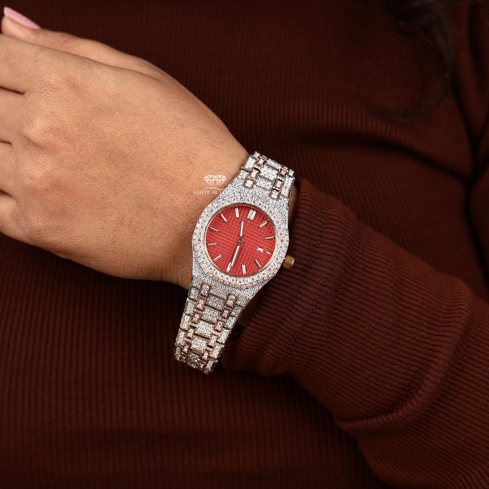 Keywords:Sleek Stick Dial Iced-Out Moissanite Automatic Watch