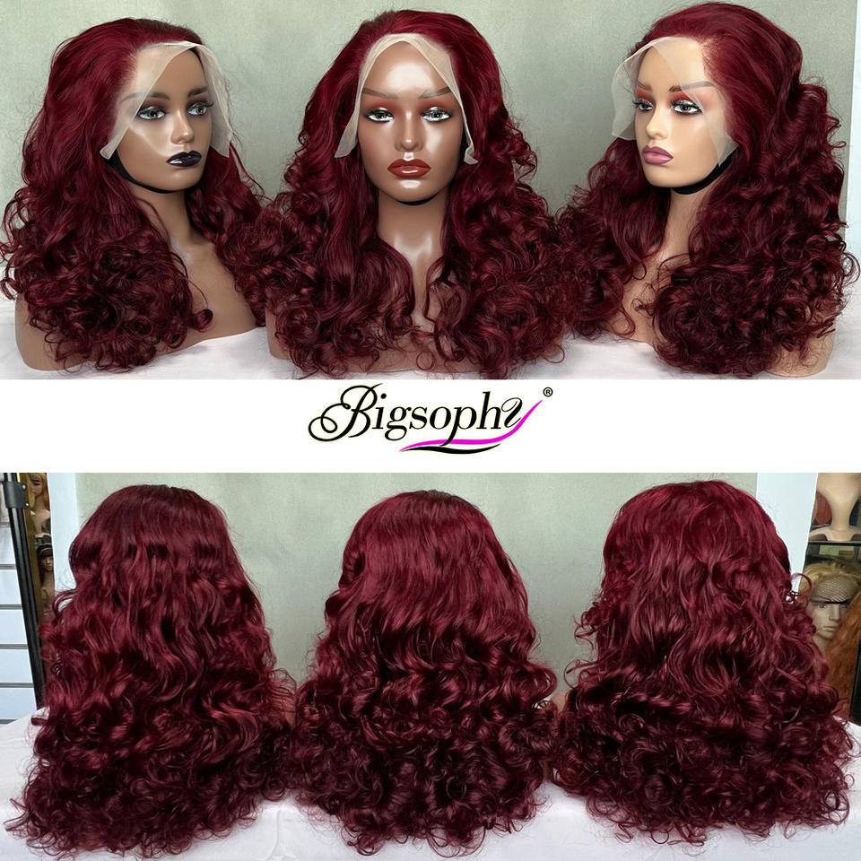 350% Density #99J Wine Color Dark Red Bouncy Curl Wig Remy Human Hair 12inch 13x4 Frontal Lace Wholesale Wigs For Black Women