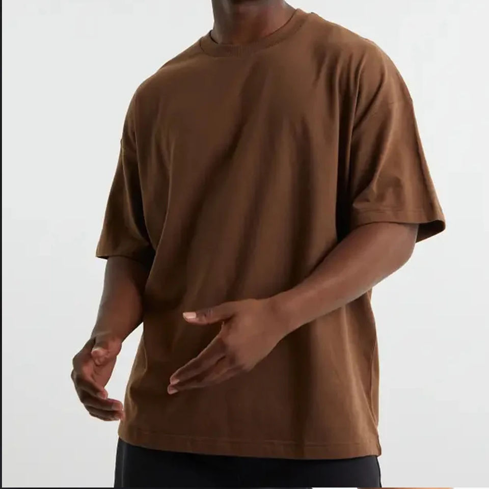 350 GSM Heavy Oversized Tee Shirt Custom Logo T Shirt Rib Thick Collar Mock Neck High Quality Heavyweight T-shirt For Men