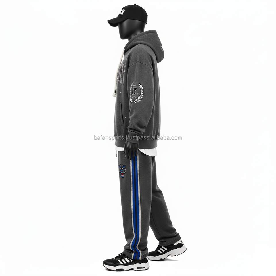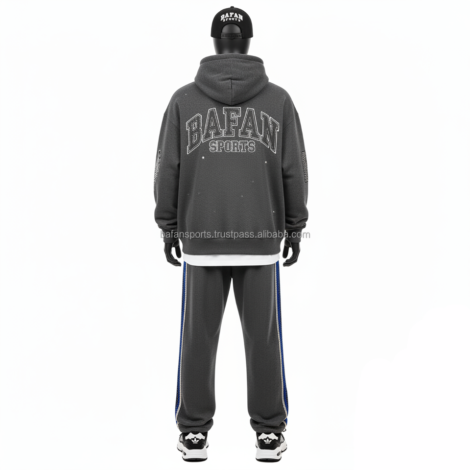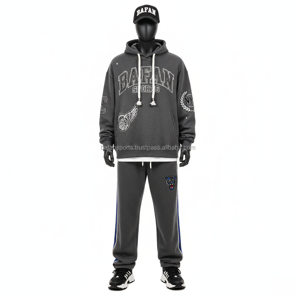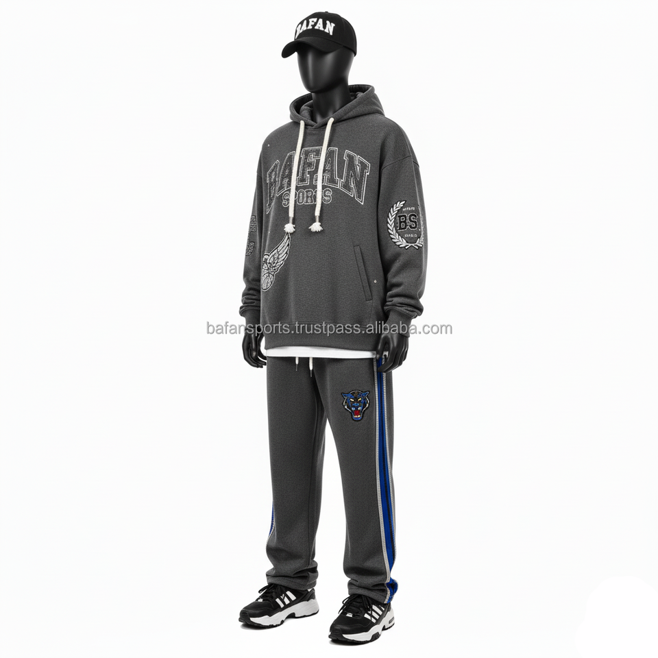 350 GSM Thick Fleece Fabric Custom Embroidery Logo Dark Grey Hoodie And Joggers Comfortable Fit Men Tracksuit