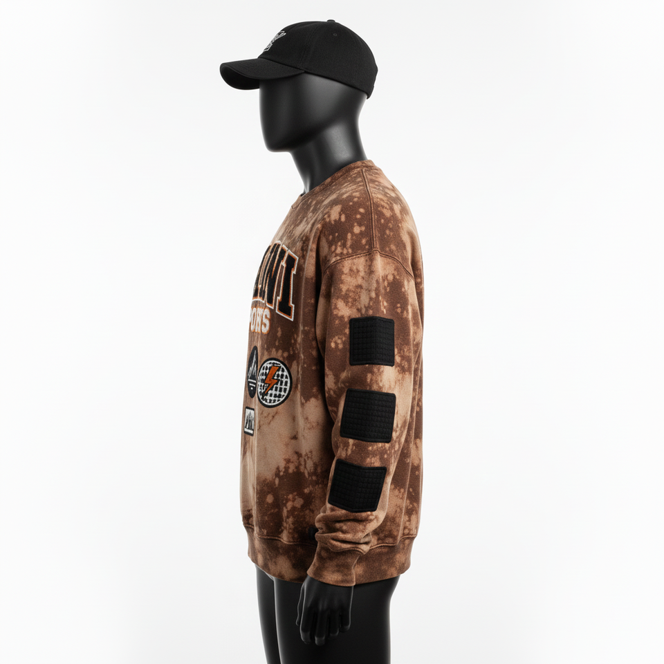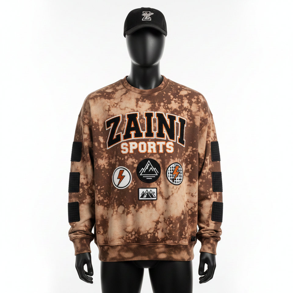 350 GSM Tie Dye Brown Color Soft Cotton Fabric Sleeve Patch Paneling Custom Logo Chenille Embroidery Basics Sweatshirts