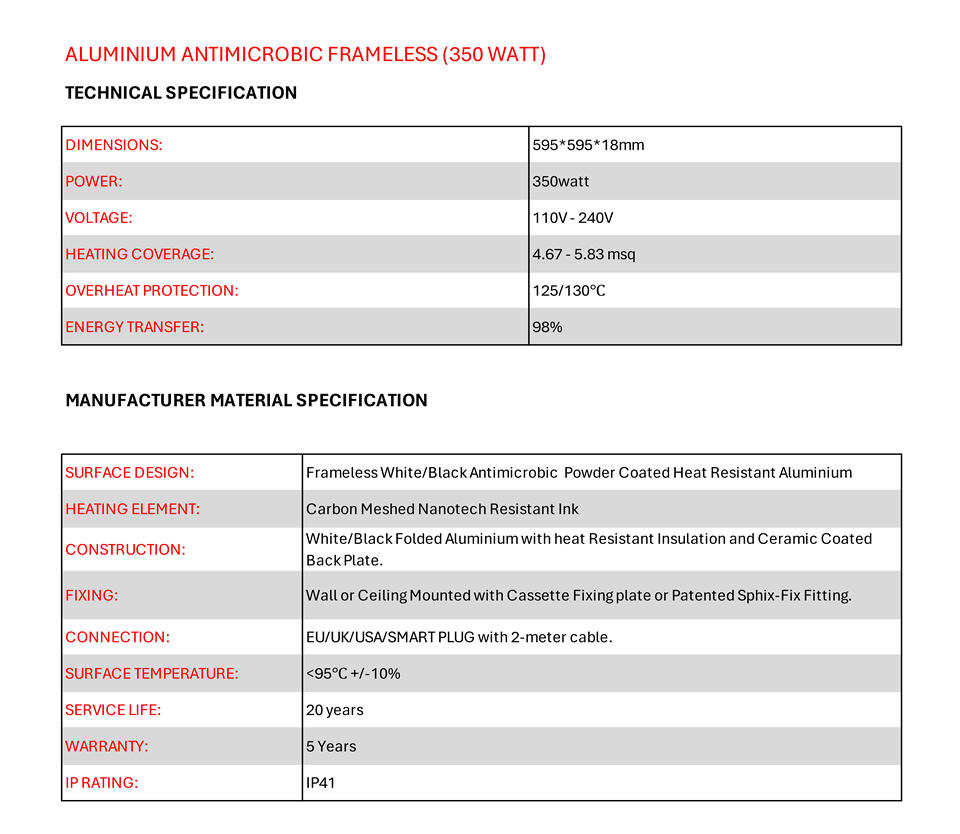 350W Frameless Aluminium Infrared Heating Panel - Energy - Efficient, Ceiling - Mounted for Room Heating