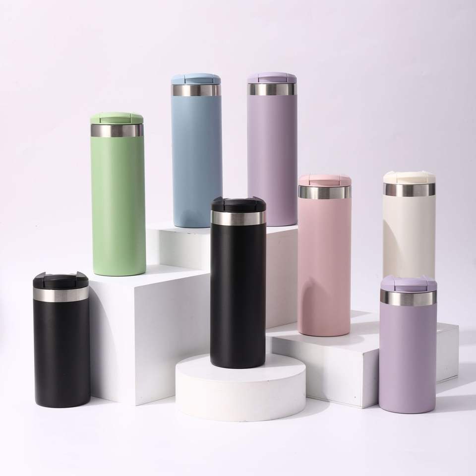350ml 500ml Custom Straight Korean Insulated Stainless Steel Cold Vacuum Thermal Cup Tumbler With Flip Cap Lid Travel